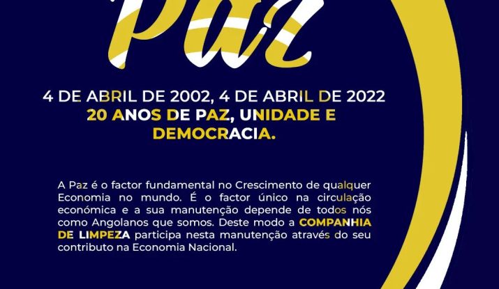 26 de Maio, 2020 Manuel Domingos company agro PAZ4 de Abril de 2002, 4 de Abril de 2022.20 anos de Paz efectiva em Angola.Unidade e Reconciliação Nacional. Postaragem mais recente